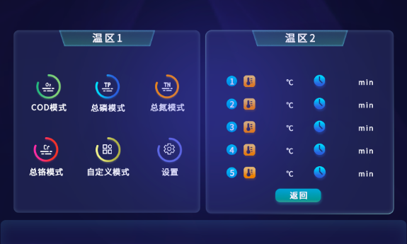 4、内置COD、总磷、总氮、总铬消解程序,无需设置一键启动工作。